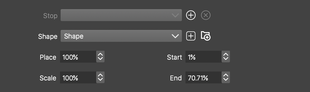- Place - Edit the position of the gradient shape along the linear gradient axis.