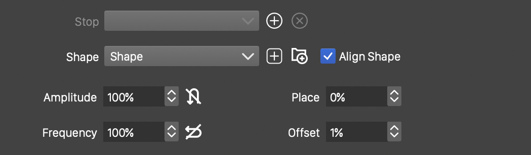 - Amplitude - Edit the stretching of the gradient shape in the direction of the linear gradient. This stretching has an effect only if the gradient shape is not a line.