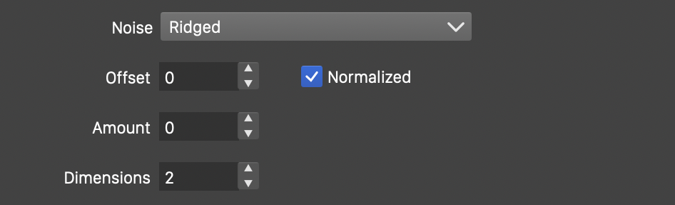 - Offset - Edit the amount of offset in the tone of the noise. Offsetting the noise may result in the use of different regions of the gradient color transition.