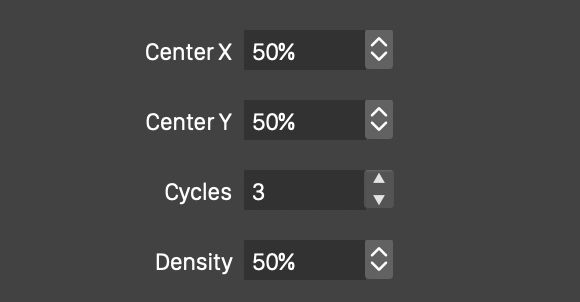 - Center X and Center Y - Set the location of the spiral center. This location is set using percentages relative to the area filled by the spiral gradient.