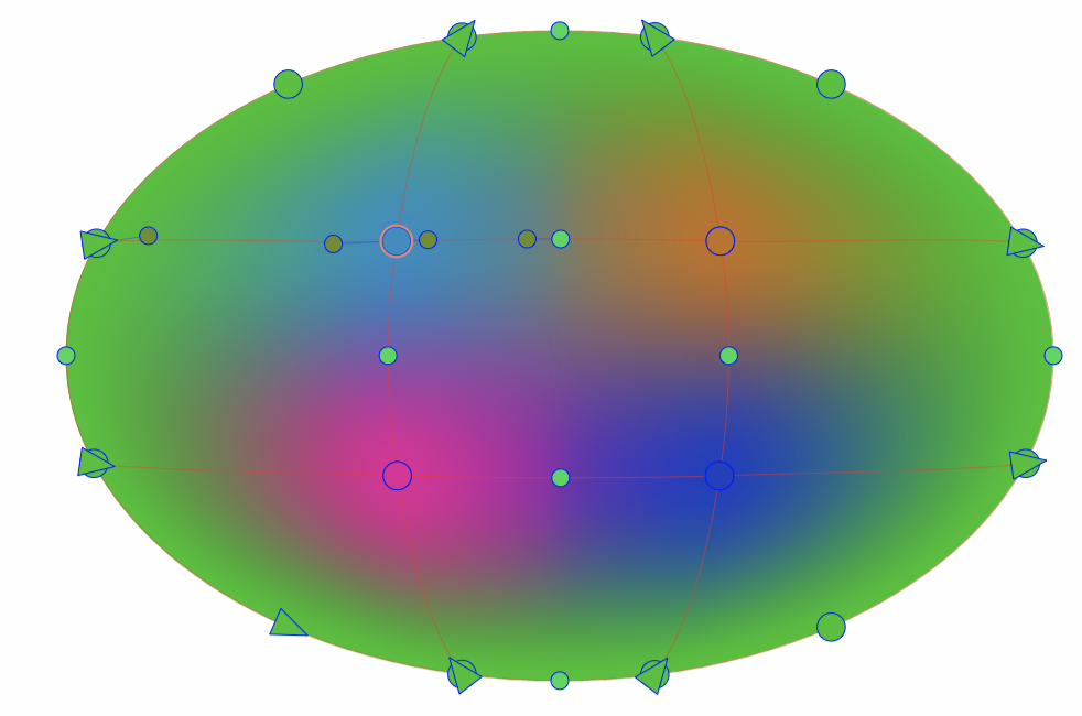 - To change the position of a mesh node, select the node by clicking on it and start dragging the node with the mouse. As the position of a node is changed, the color transitions are updated automatically.