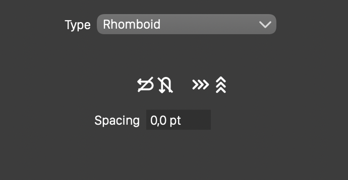 - Spacing - Edit the amount of spacing between the rhomboid tiles of the pattern. Negative values result in overlapping tiles.