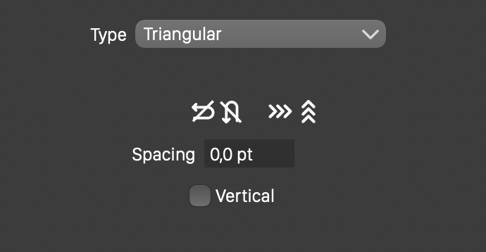 - Spacing - Edit the amount of spacing between the triangular tiles of the pattern. Negative values result in overlapping tiles.
