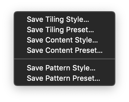 - Content - Opens a list of pattern content styles, presets and object references (including symbols), that can be used as a content for the tiling pattern style.