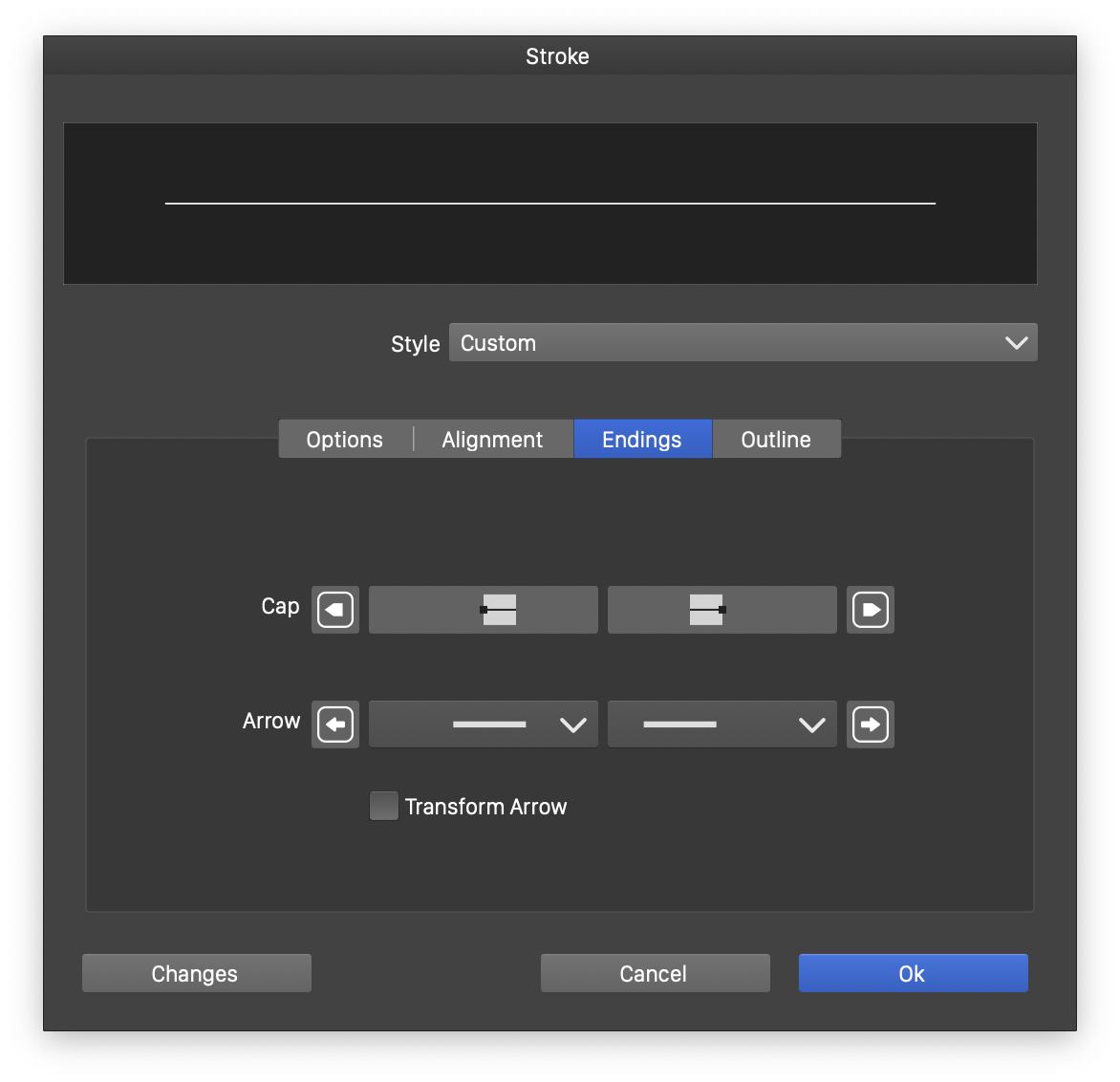 buttons to edit the starting or ending stroke arrow attributes. Clicking on the