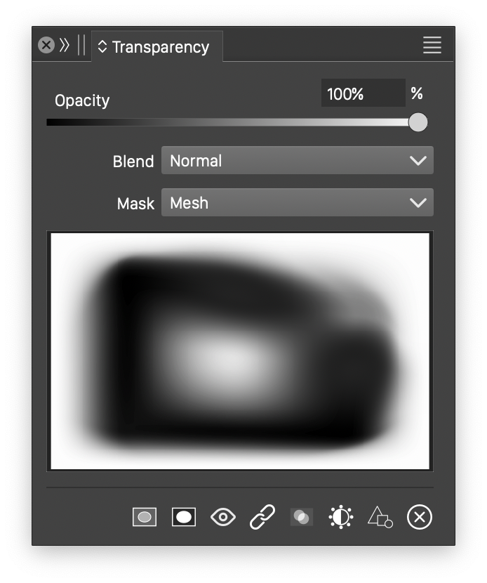 The mesh transparency editing of the selected objects can also be initiated by double clicking the transparency mask preview in the Transparency panel.