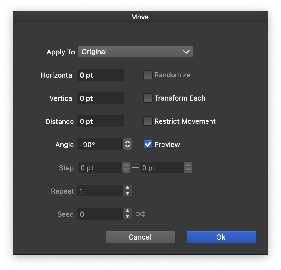 - Preview - Enable the previewing of the current movement options on the selected objects.