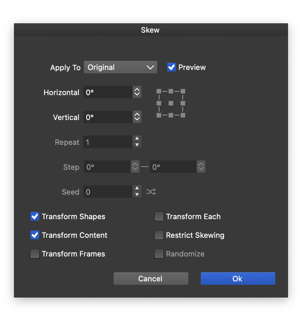 - The skewing angle will snap to the angle of the guidelines on the current canvas and artboard.