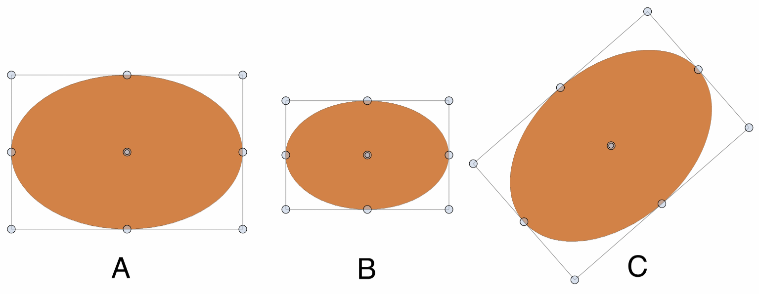 When applying skewing and rotations to an object, the bounding box of the object (showing the transform handles) will be shown according to the current skewing and rotation amounts. This results in a transformed bounding box, and the ability to resize the object before the rotation and skewing amounts are applied.