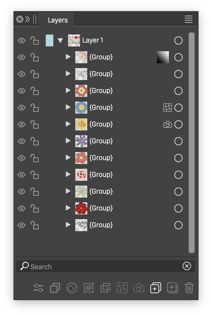 - Locate Selection - Select the objects in the layer panel that are selected on the canvas.