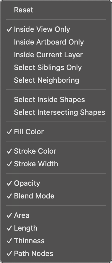- Inside Artboard Only - Check to only select objects inside the same artboard as the clicked object.