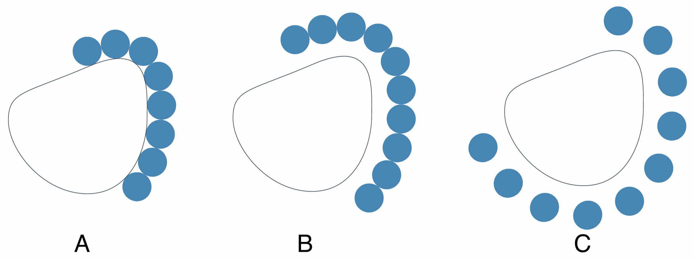 A collision example with various spacing. Objects are positioned using the Pointer tool, with the collision snapping enabled.