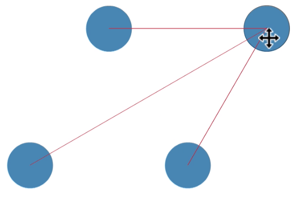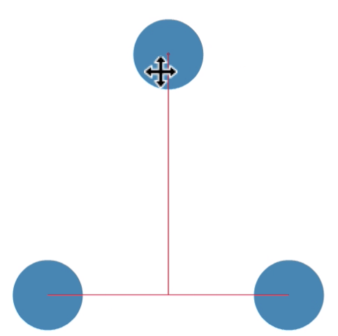 When formation snapping is enabled, the moved object is snapped to the closest line defined by two other objects. A number of locations along these lines define additional snapping locations, for precise object positioning.