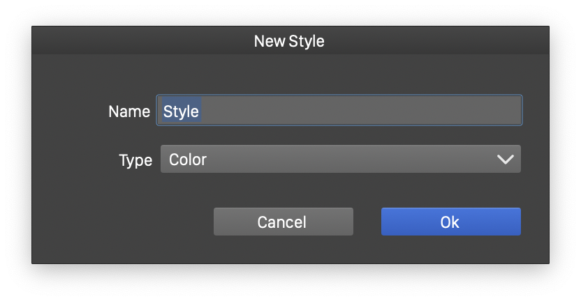 When creating a new style from the selection, a menu of various style types is show, to to select the type of the style extracted from the object. If multiple objects are selected, numbers are appended to the style names to create multiple new styles.