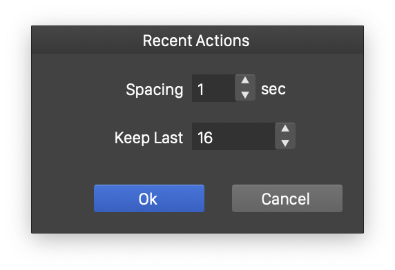 - Keep Last - Set the number of most recent actions shown in the panel. Changing this field will clear all recent actions beyond the new limit.