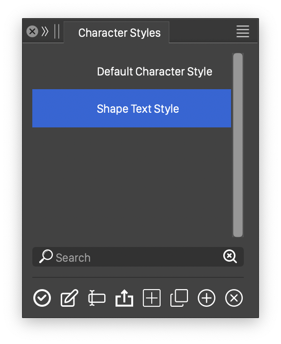 The content of the Character Styles panel is similar to the Styles panel, described in the Styles section.