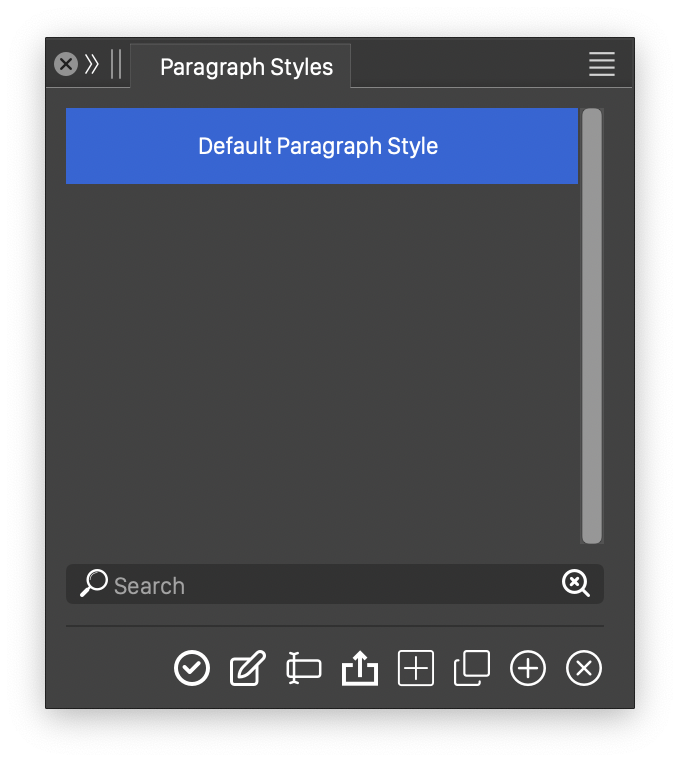 The content of the Paragraph Styles panel is similar to the Styles panel, described in the Styles section.