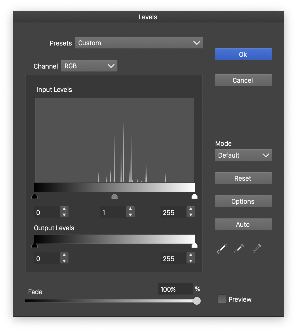 The Levels adjustment is similar to the Curves color filter, but with a restricted and more specific adjustment model of color tone transitions.