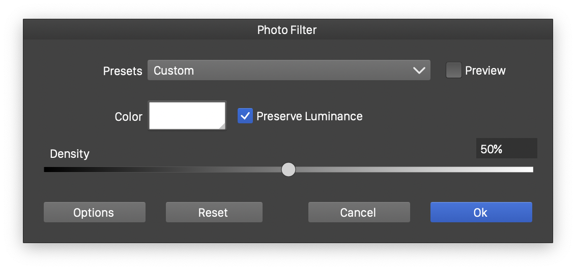 The Photo Filter color filter editor.