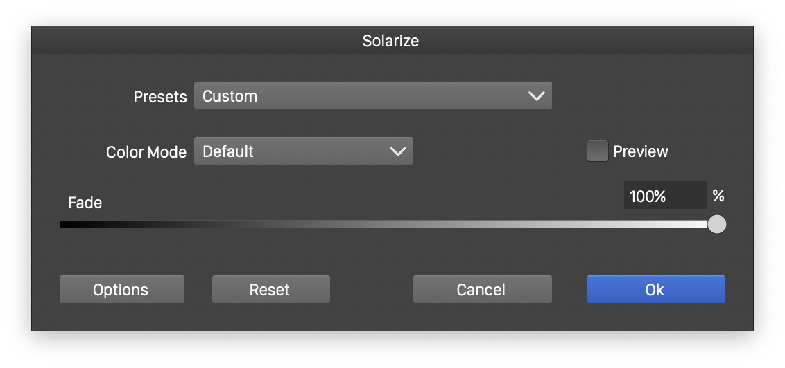 - Fade - Edit the amount of fading between the original color and the solarized color.