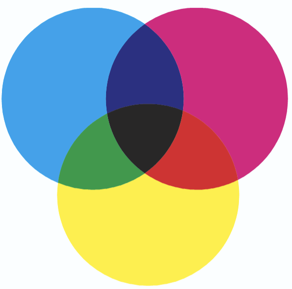 The base CMYK colors and their combinations.