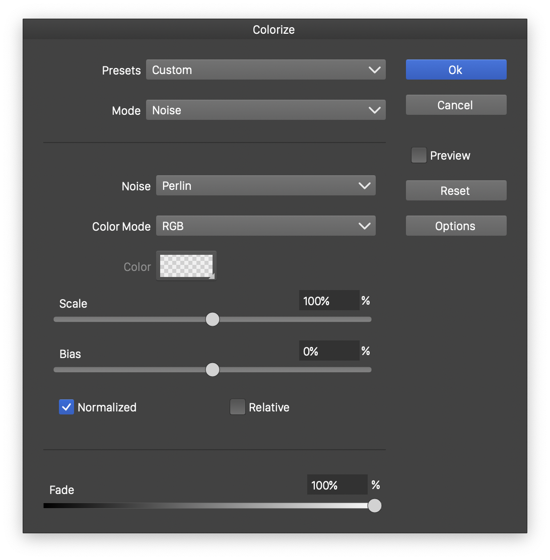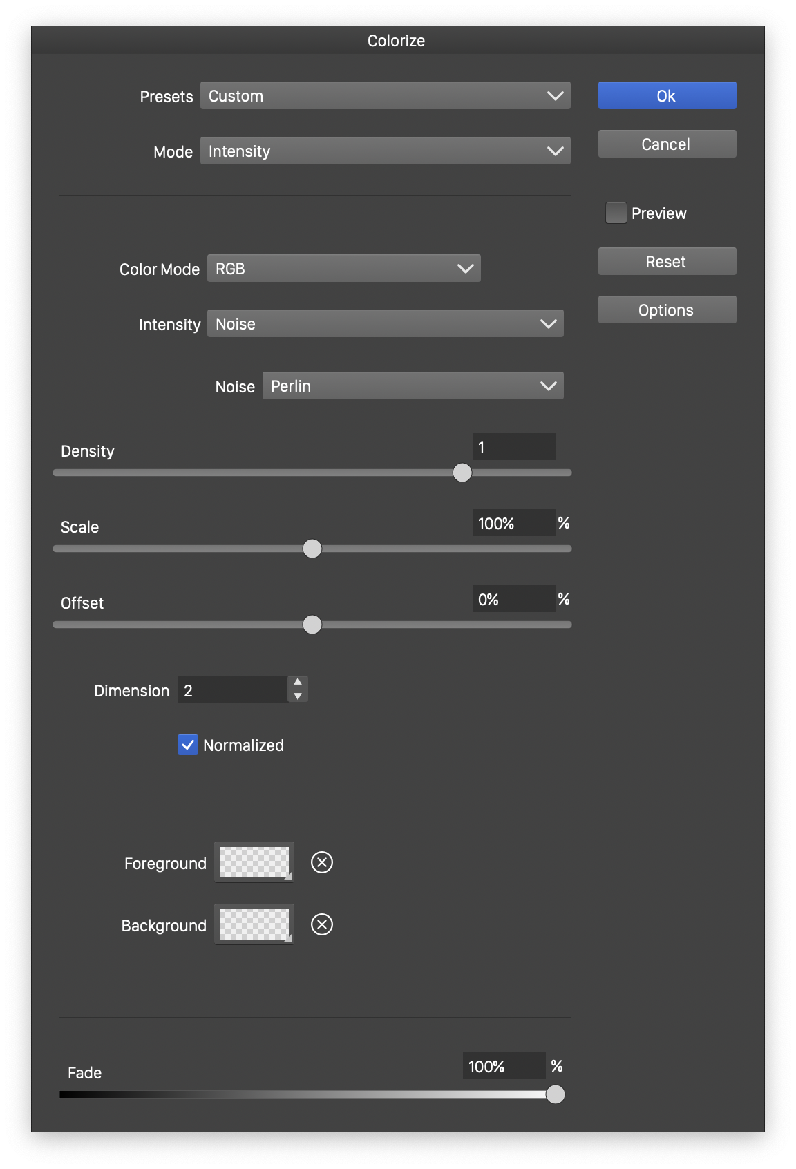 - Fade - Fade the final colors between the original colors and the disturbed color.
