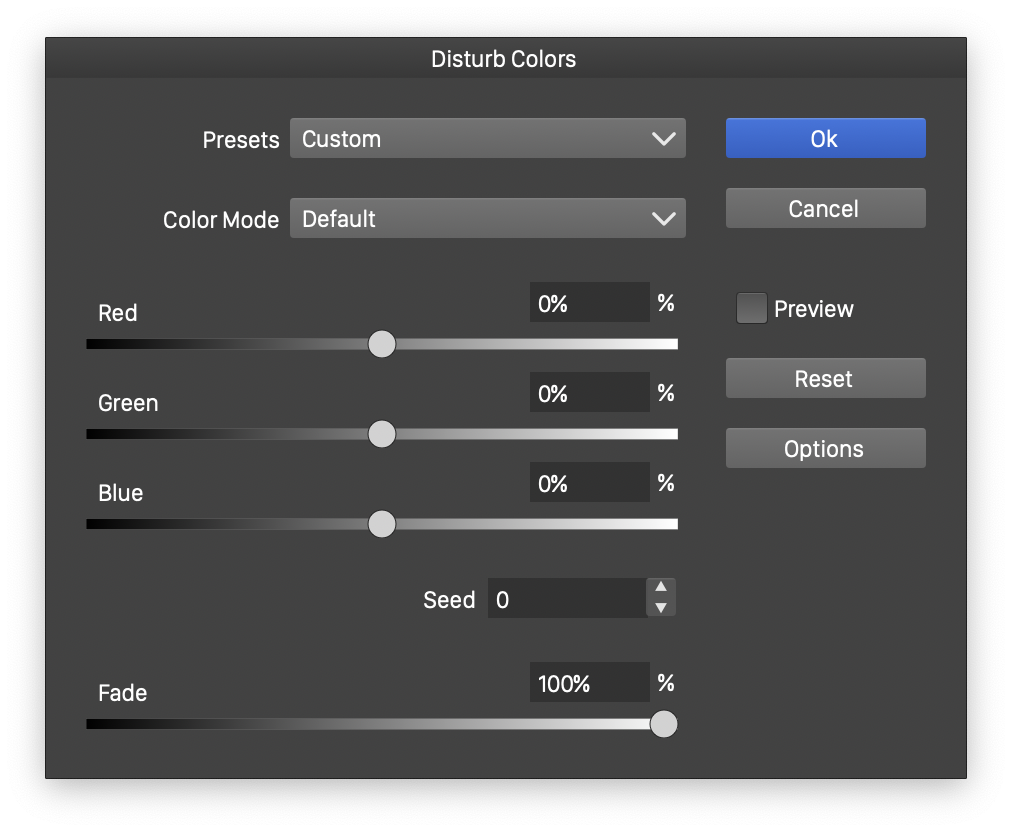 - Seed - Set a seed value for randomization to create a different color disturbance.