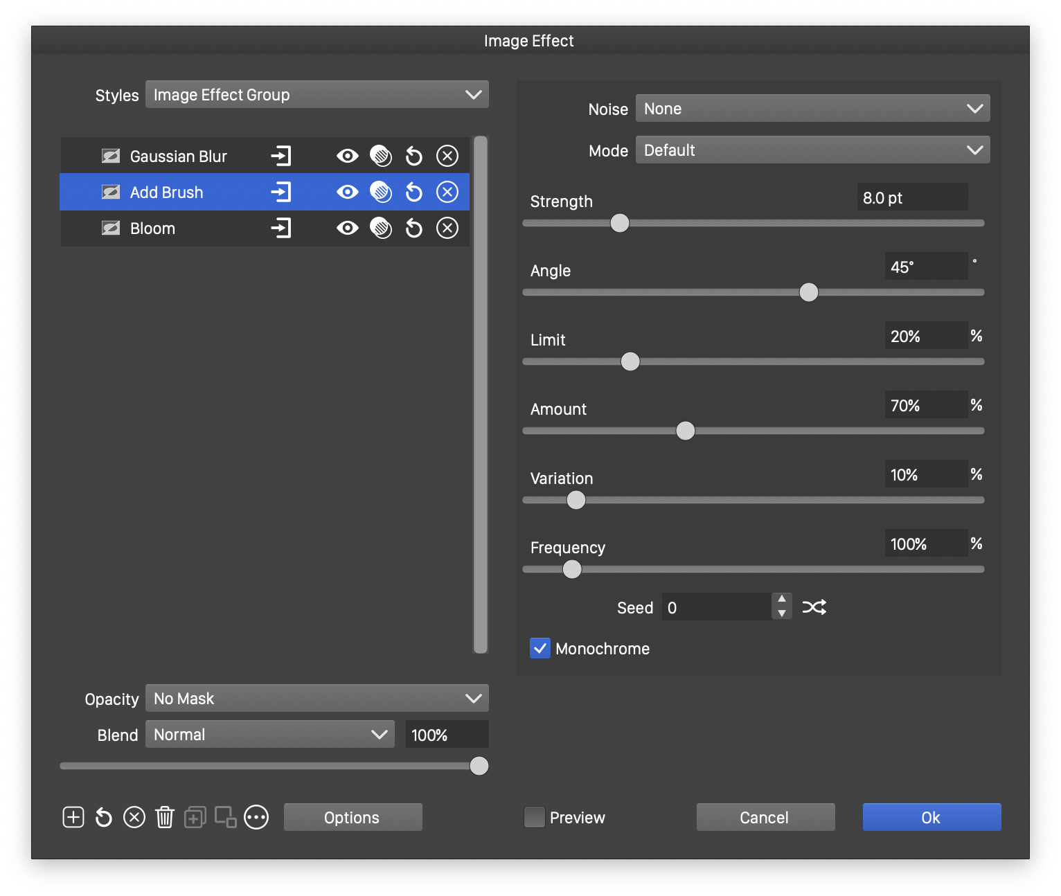 - The masking options of an image effect can be edited by clicking on the