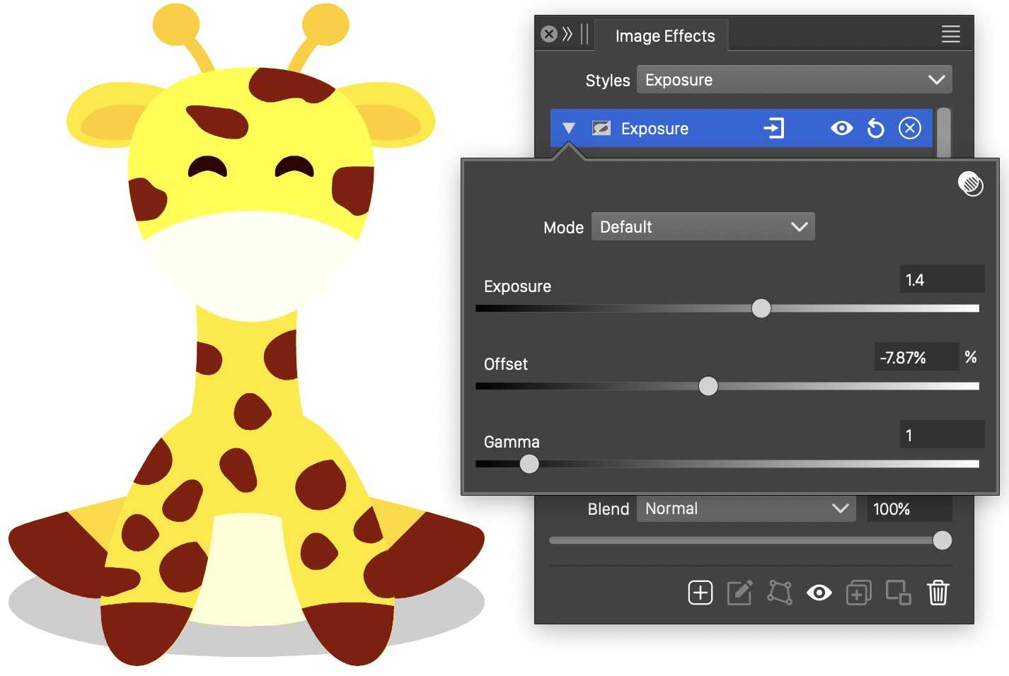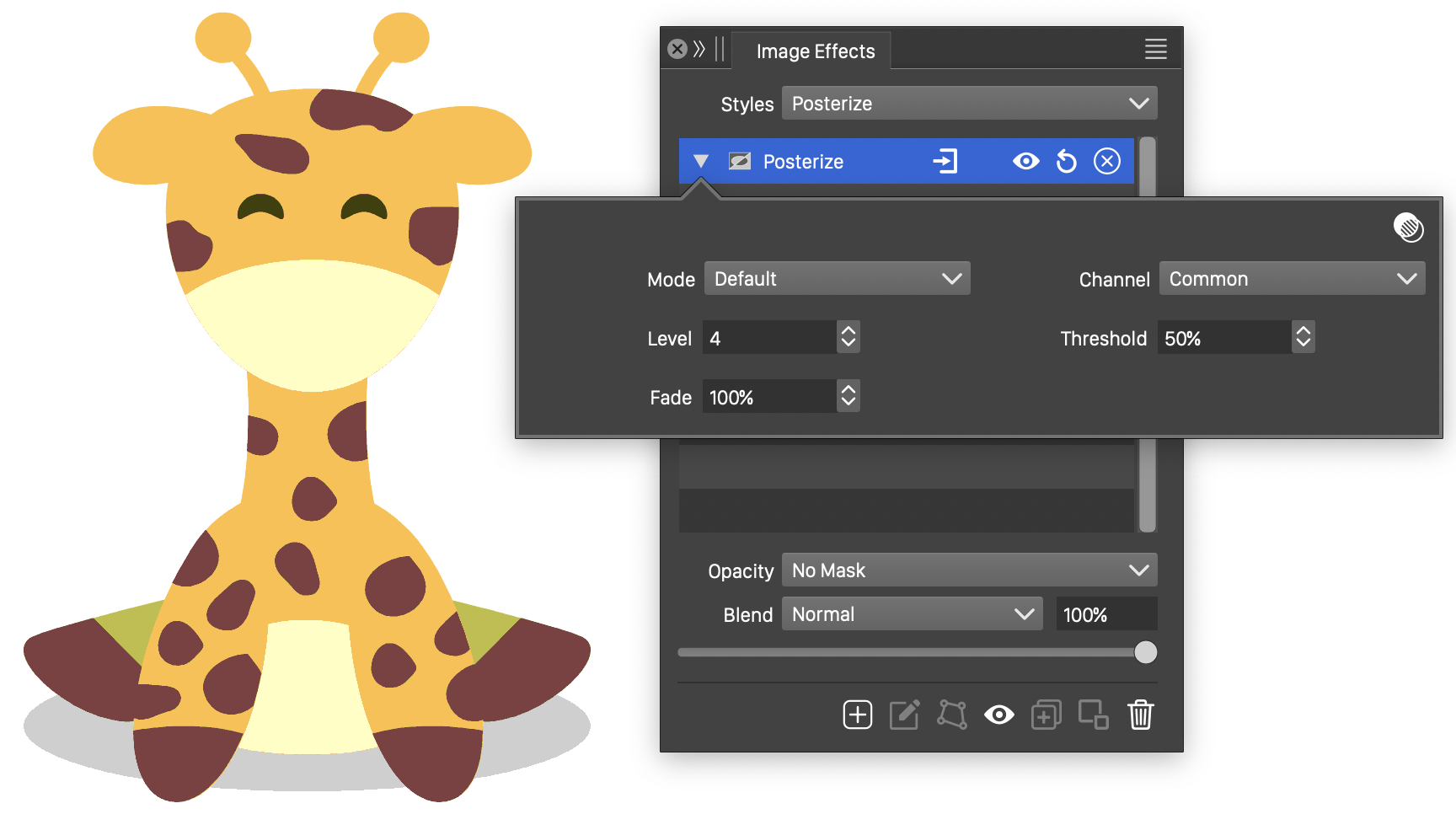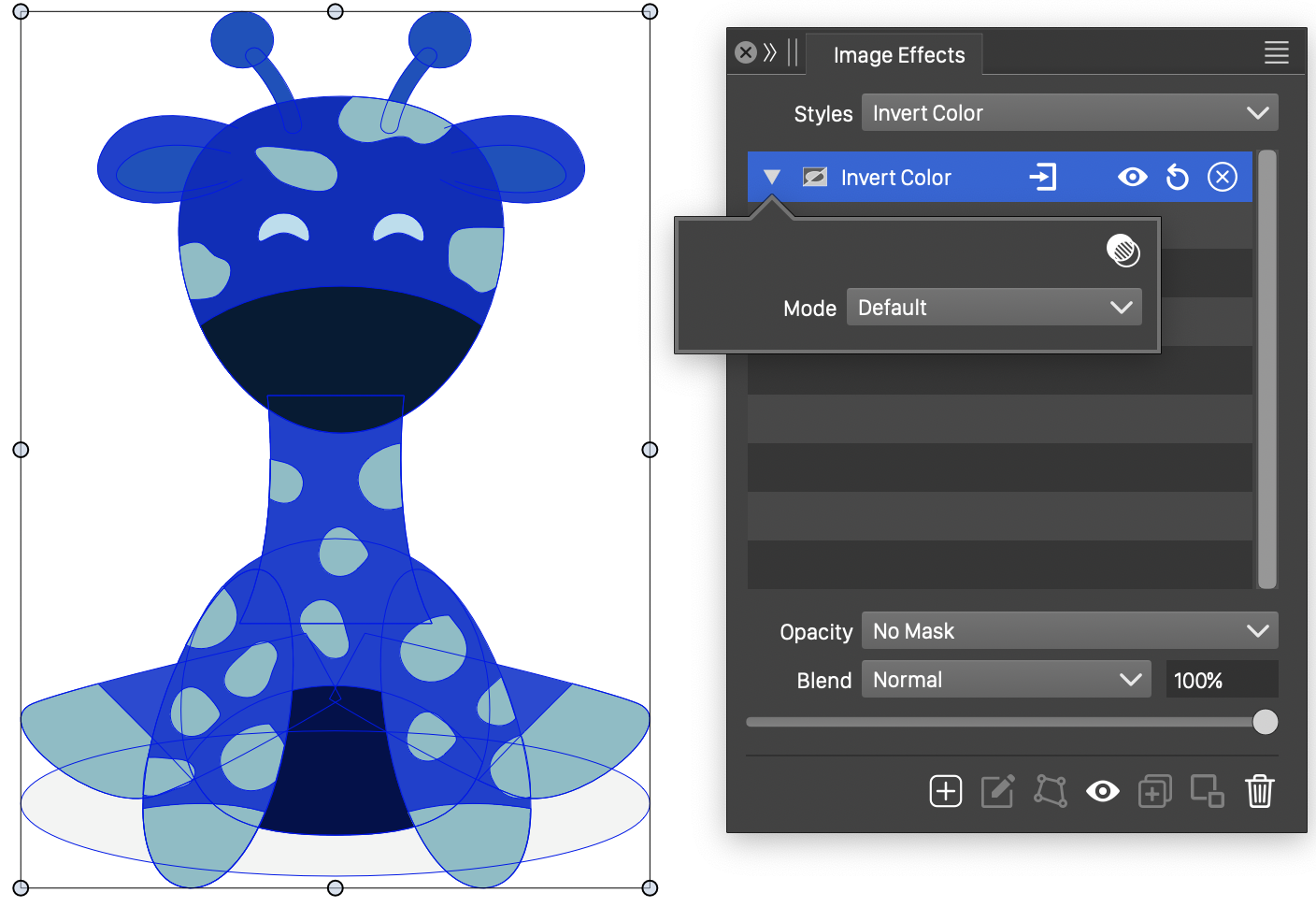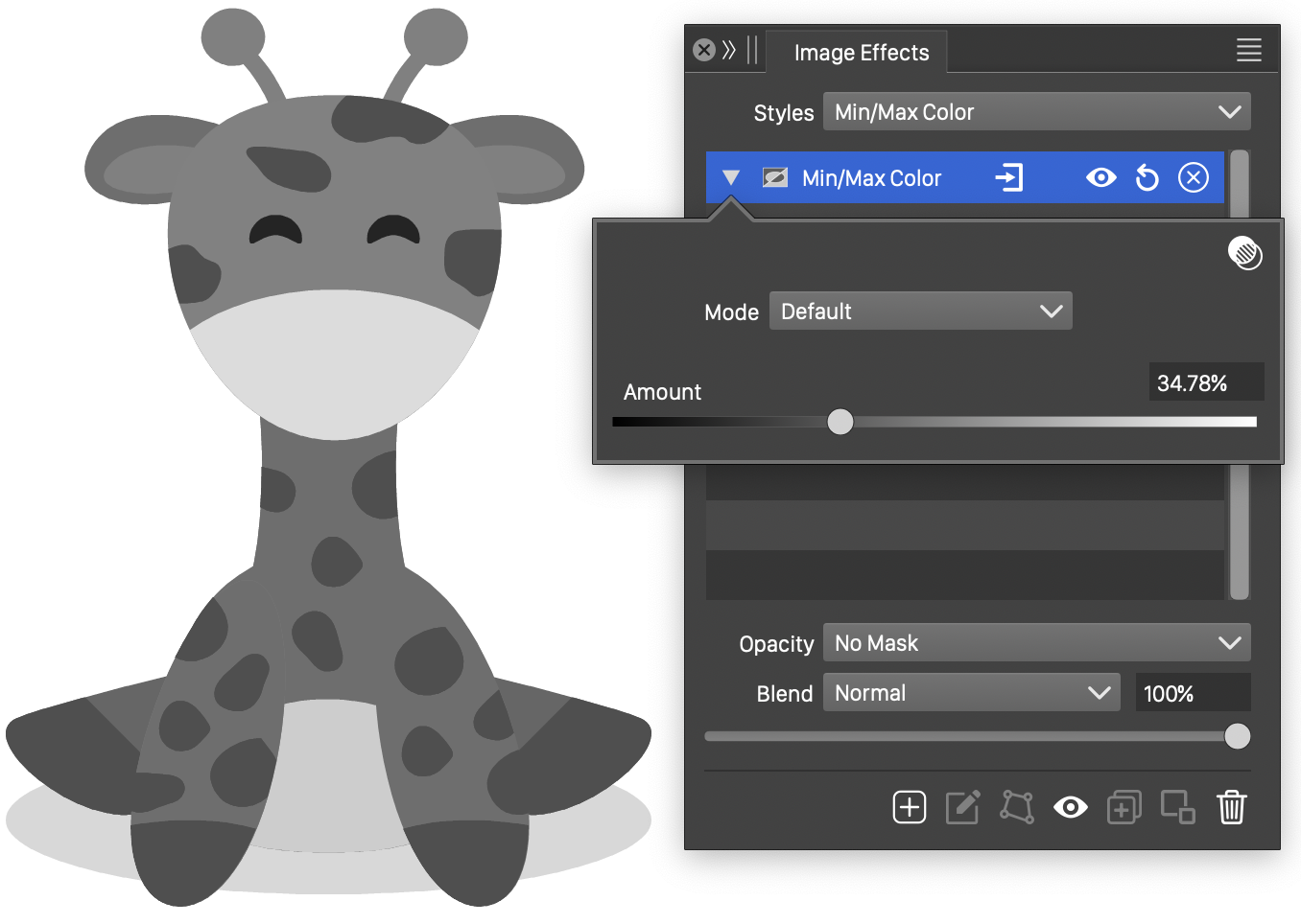 These effects have no geometric interpretation, and therefore can only be edited using the options from the Image Effects panel or modal editor view.