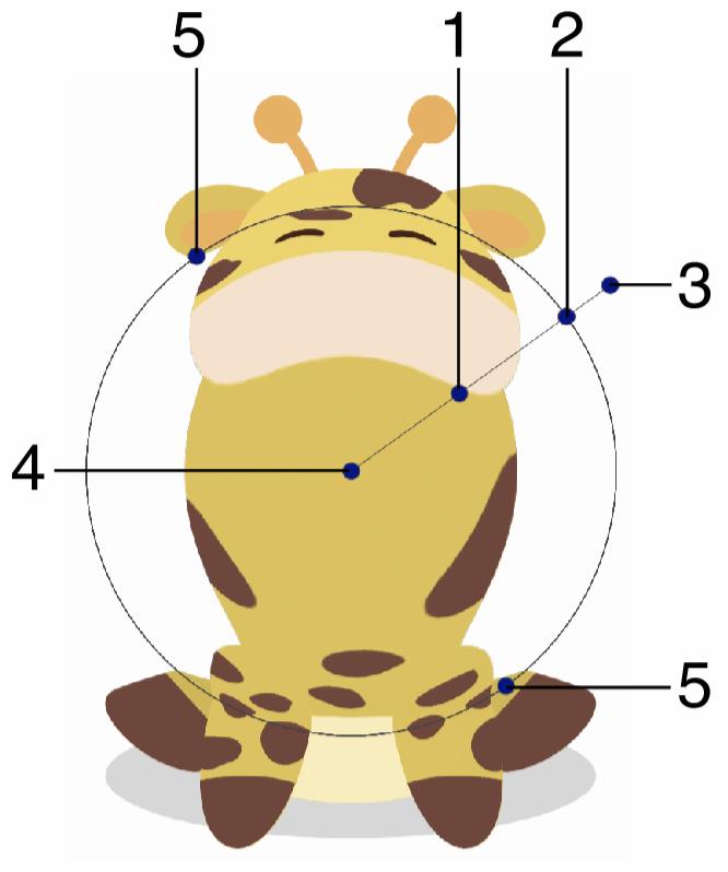 - (5) - Set the vertical stretching of the distortion region, by dragging this handle towards or away from the center.