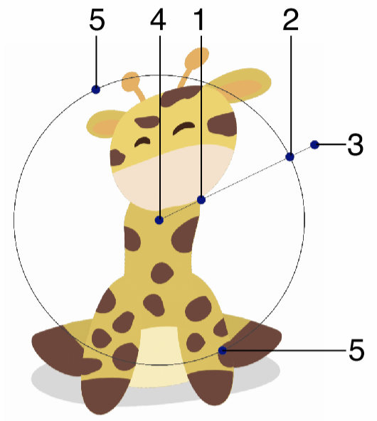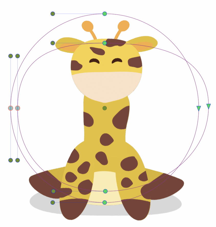 Interactive editing of the circular bump distortion is done by dragging the handles to change an attribute value: