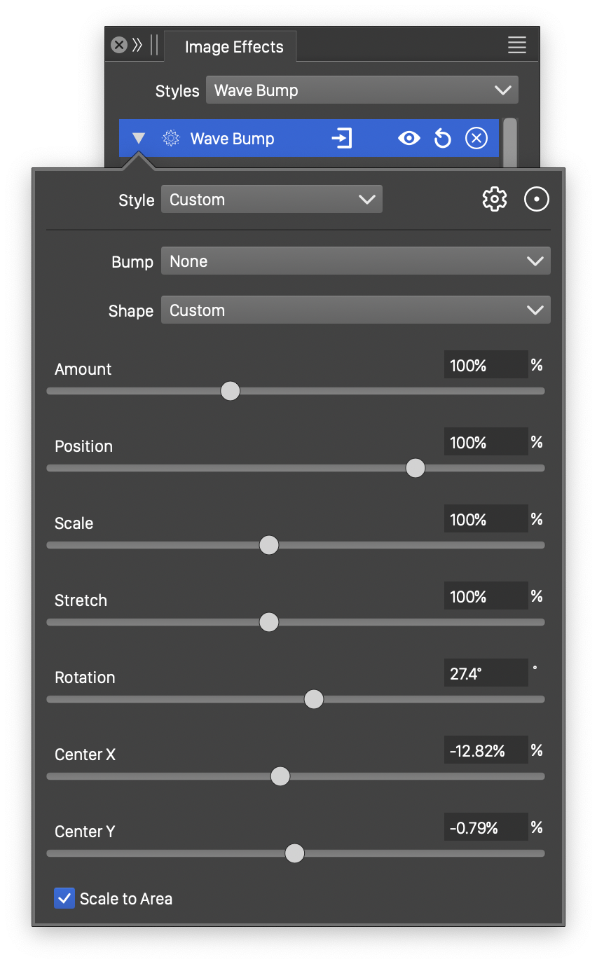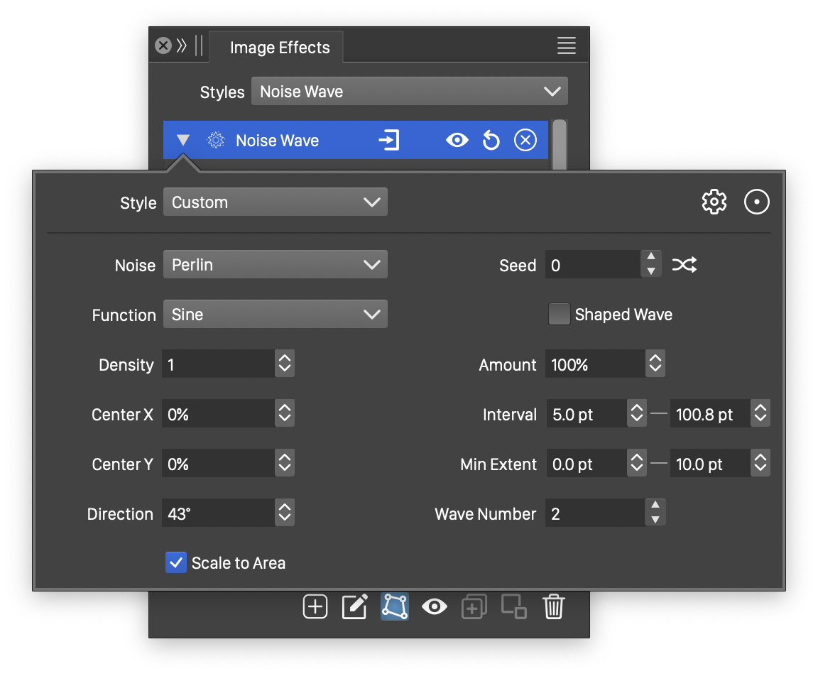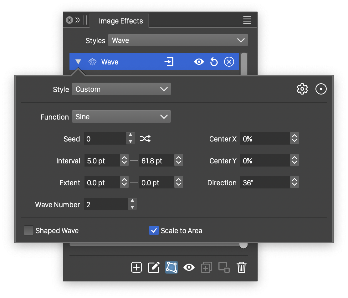 image effect editor tool. - Scale to Area - Enable or disable the scaling of the selected wave shape to the filtered area.