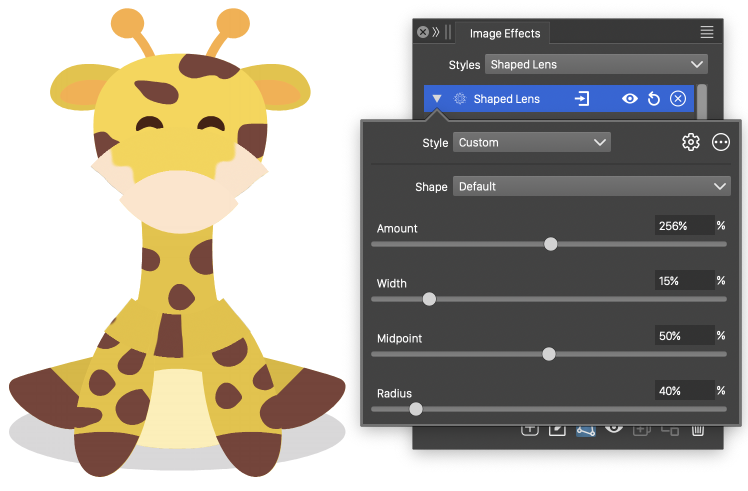 button from the Image Effects panel, activates the image effect tool used to interactively edit the shaped lens distortion attributes.