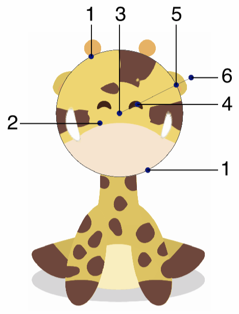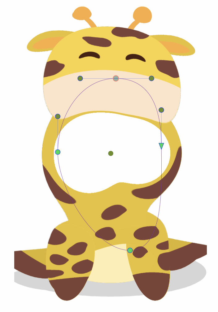 Interactive editing of the hole distortion is done by dragging the handles to change an attribute value: