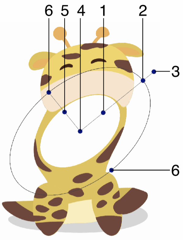 - (6) - Set the vertical stretching of the distortion region, by dragging this handle towards or away from the center.