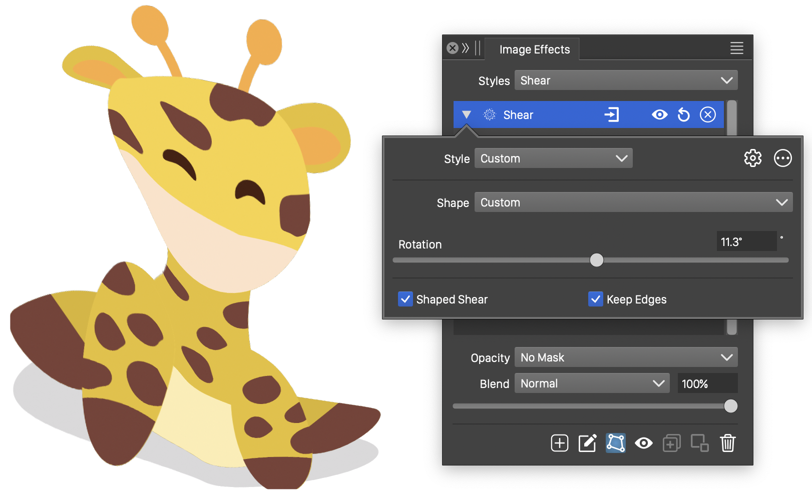 Some of the distortion effects contain a shape attribute, controlling the shape of the distortion. The shape attribute can be edited using the secondary