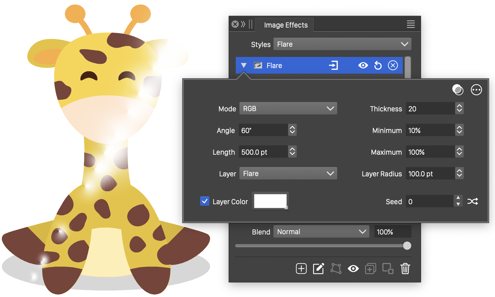 - Layer Angle - Adjust the angle of the current flare layer, relative to the flare direction.