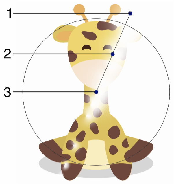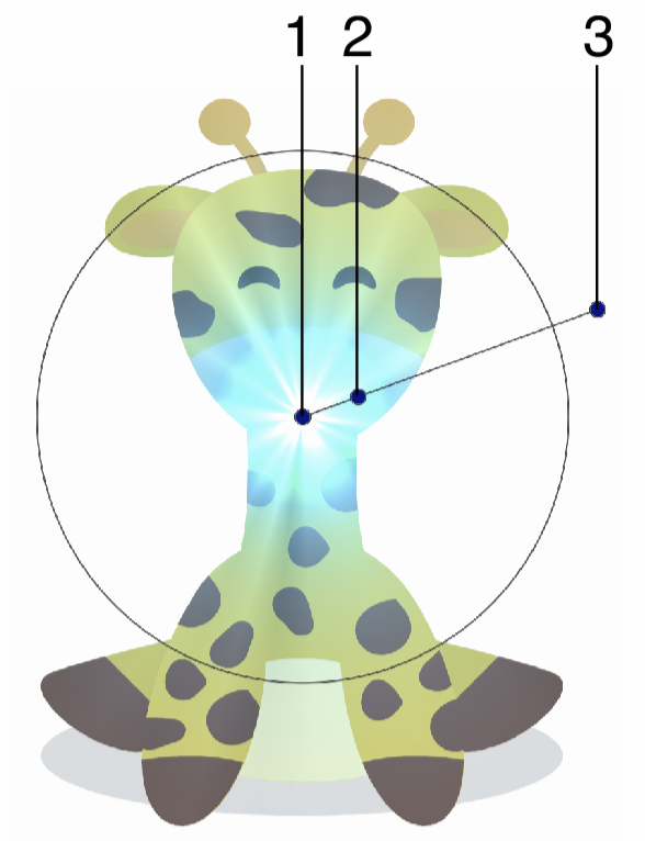 Interactive editing of the flare effect is done by dragging the handles to change an attribute value: