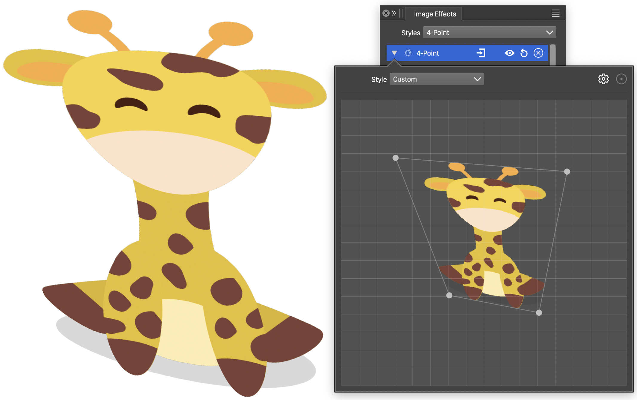 The 4-Point distortion effect can be interactively edited, using the primary image effect editor