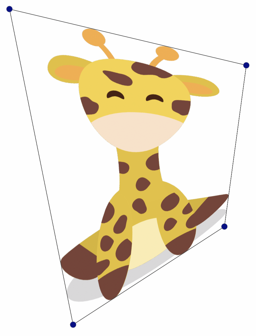 The 4-Point distortion effect stretches the object image, inside a region defined by four points. The four points can be freely positioned, and the image is distorted according to the polygon defined by the four points. The sides of the bounding box are mapped to the sides of the four point distortion polygon.