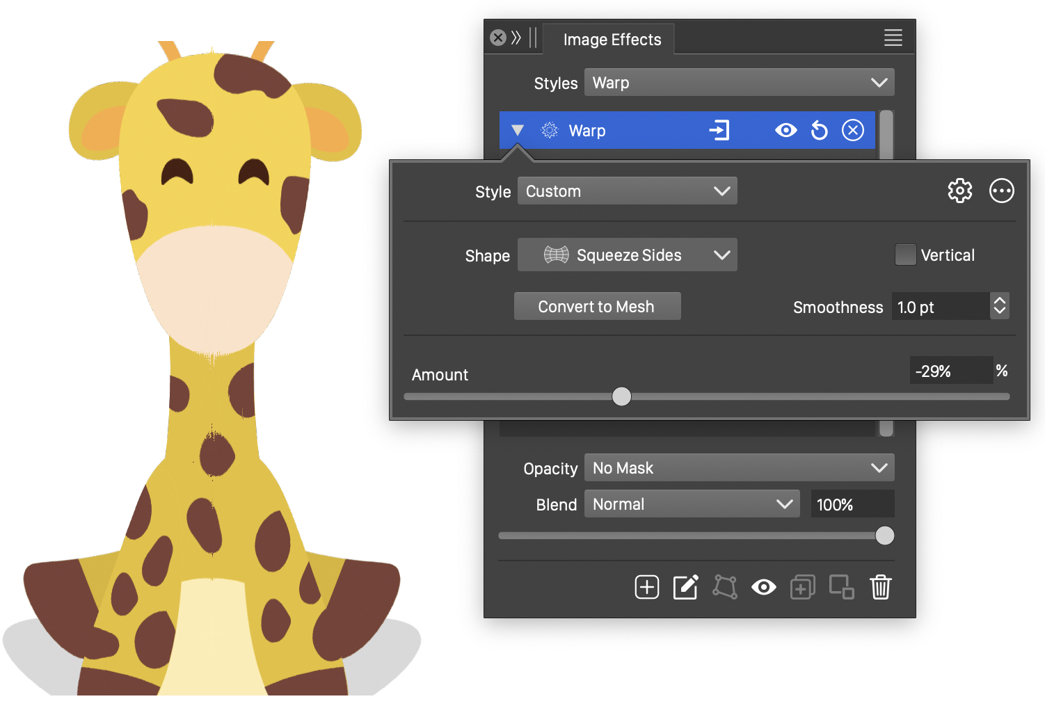 Interactive editing of the Mesh Warp distortion.