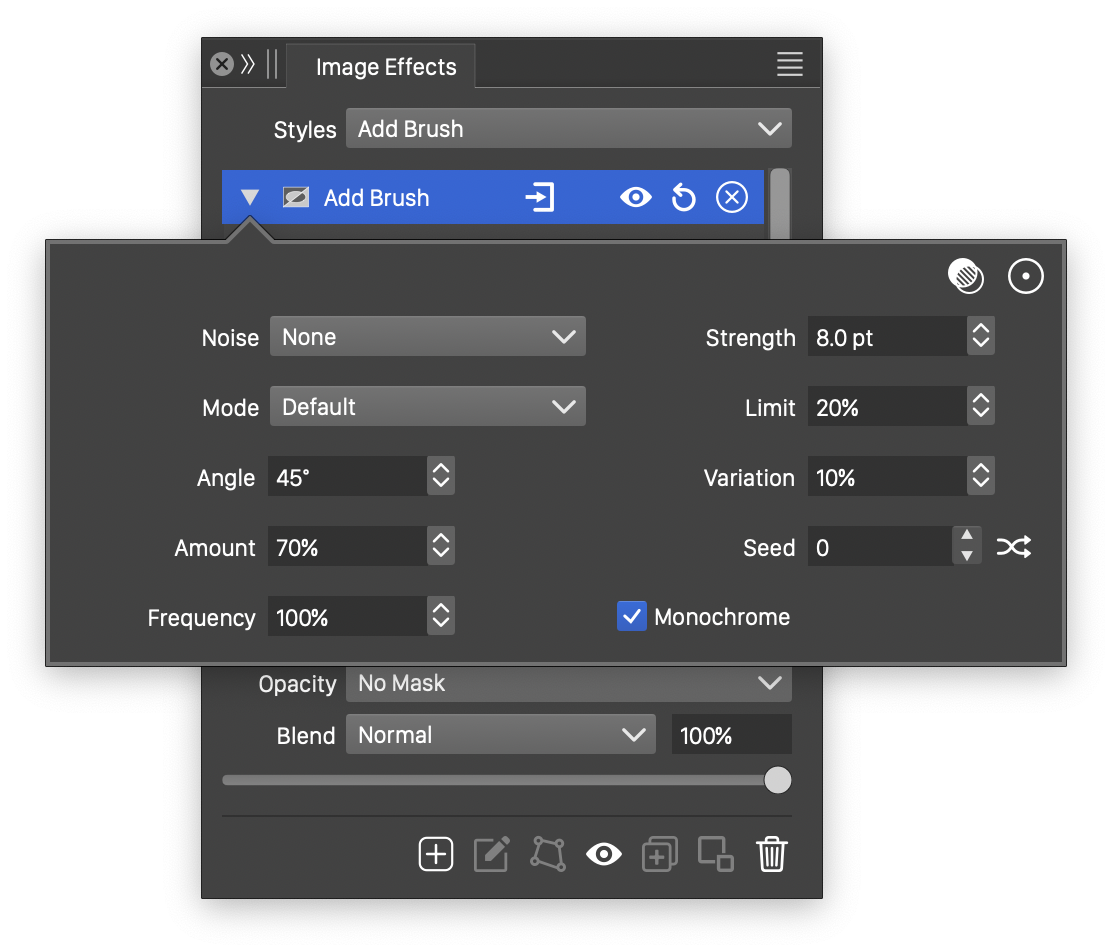 Advanced options of the Add Brush effect.