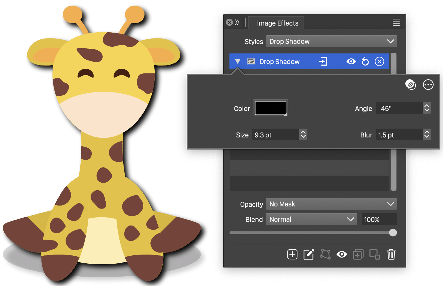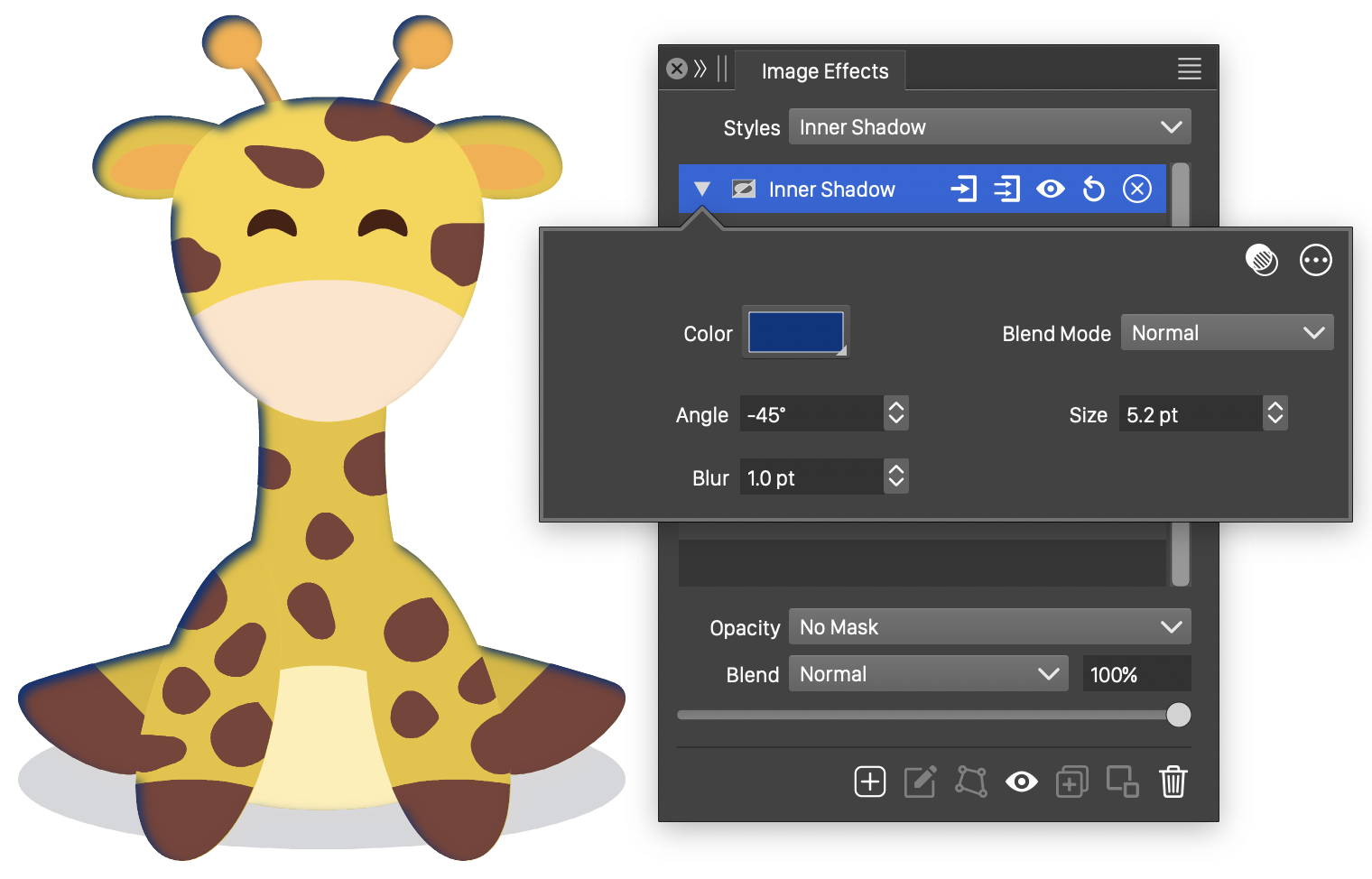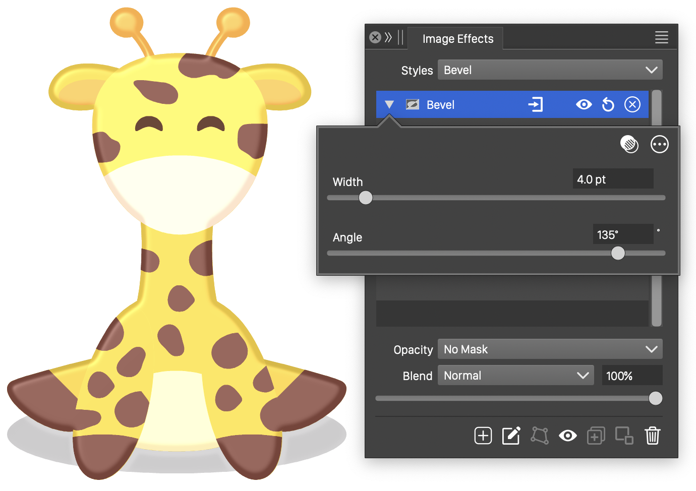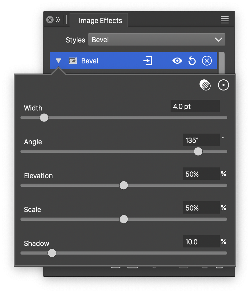 The Bevel image effect uses the following basic options: