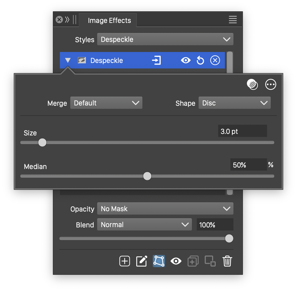 The advanced options of the Median effect can be accessed, by clicking on the