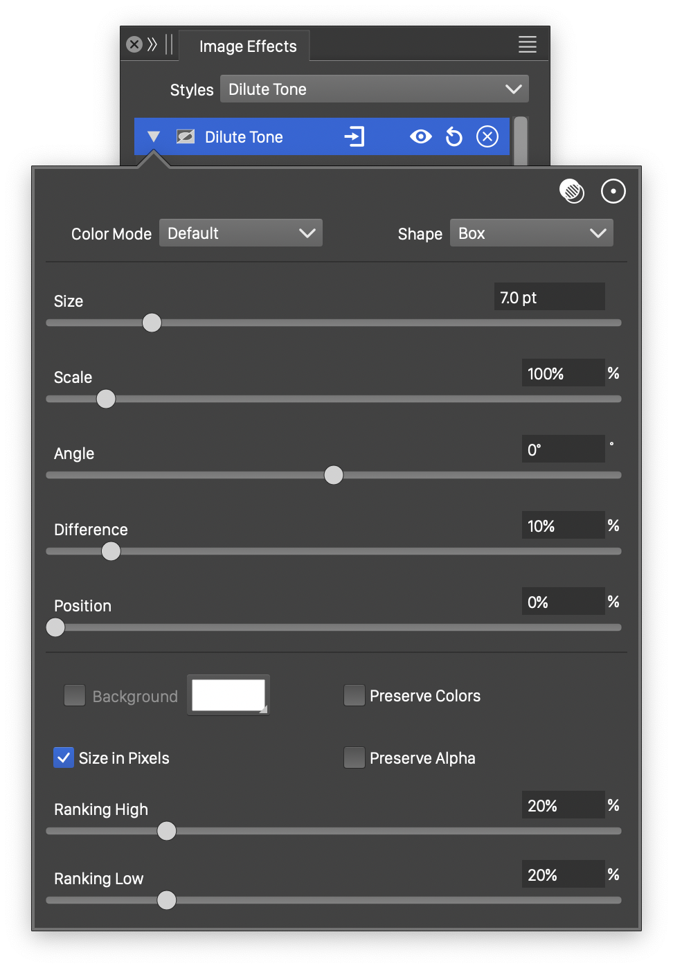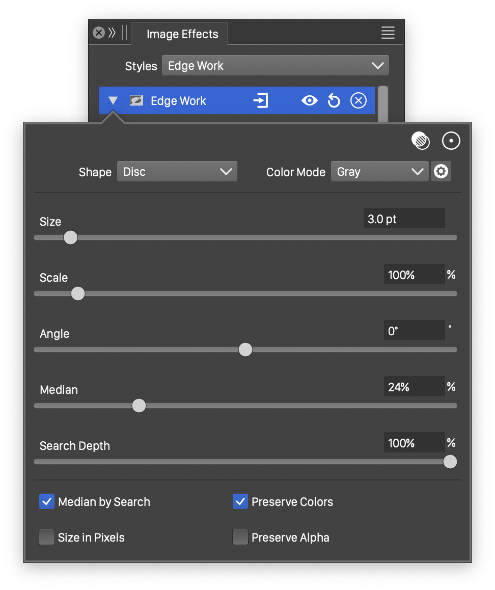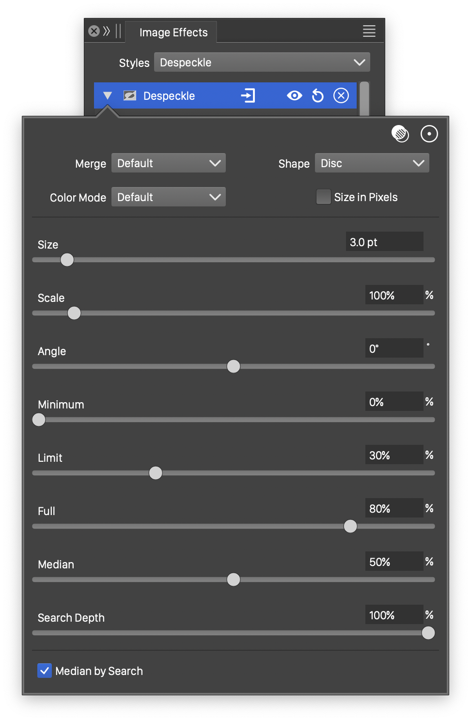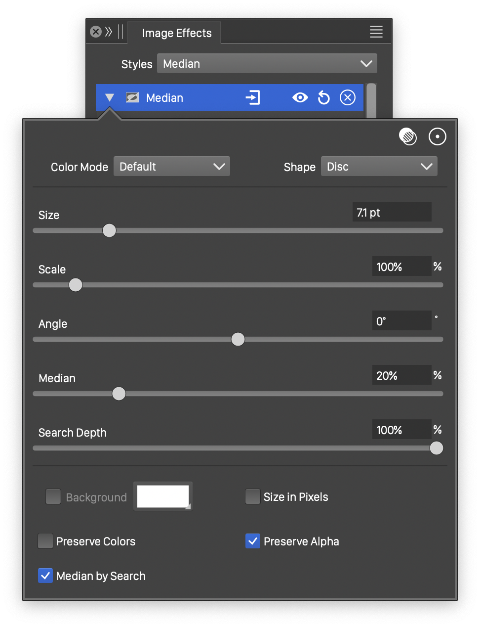 Advanced options of the Median effect.