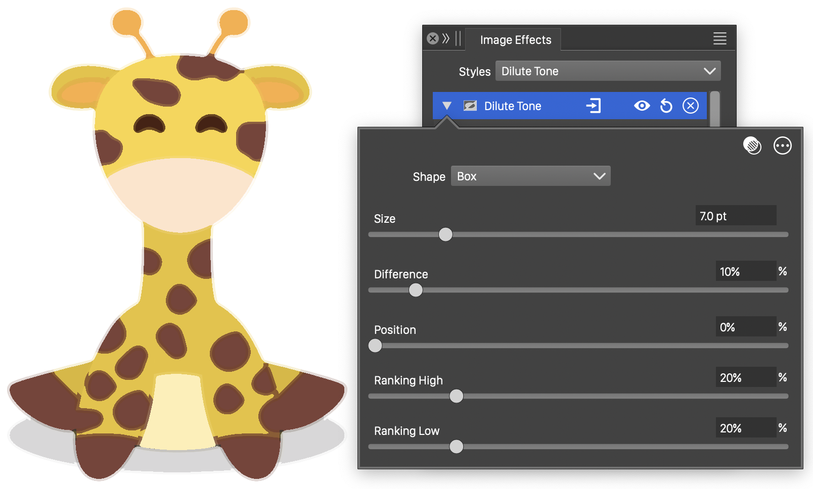 The Stamp image effect uses the following basic options: