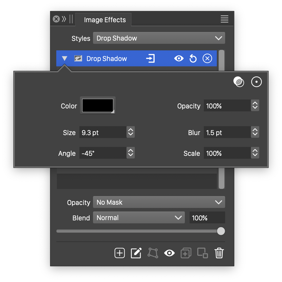 Interactive editing of the Sharpen effect is done by dragging the handles to change an attribute value: