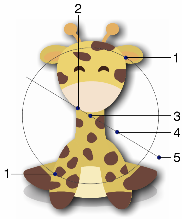 Interactive editing of the bevel effect is done by dragging the handles to change an attribute value: