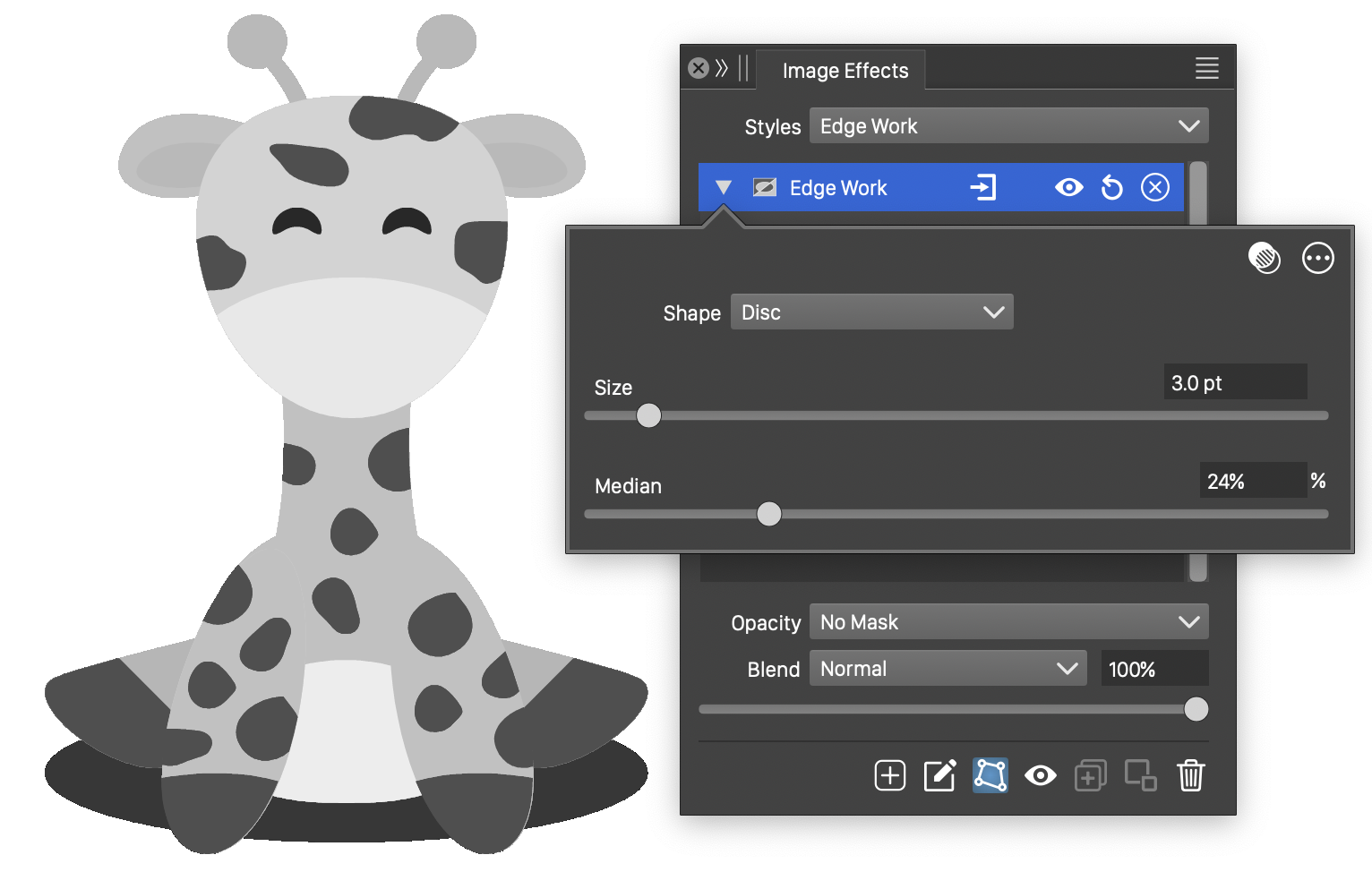 Interactive editing of the Median image effect.