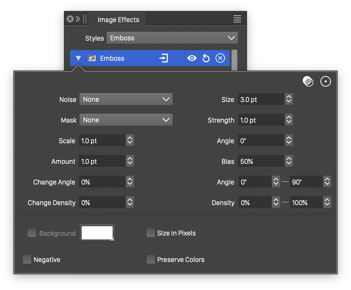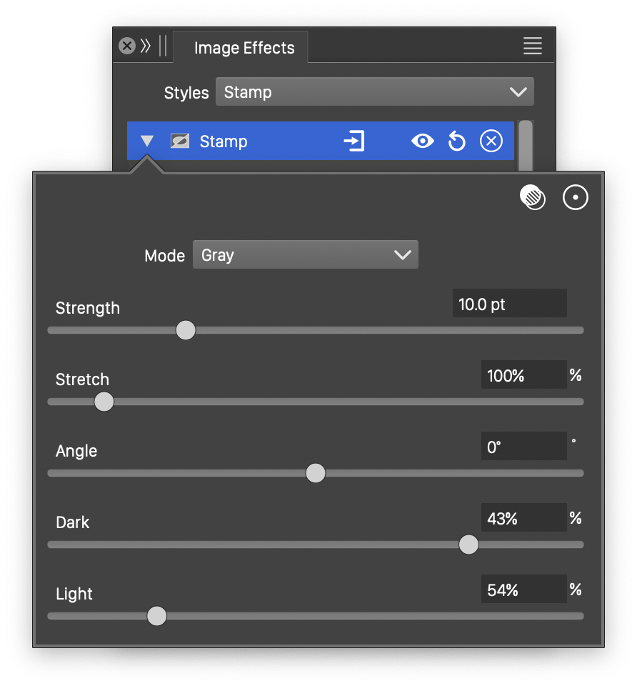 The advanced options of the Stamp effect can be accessed, by clicking on the